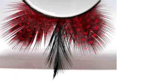 Model:Feather Eyelashes SA-69Colour: RedPattern: Red dotted with black extra plumeStyle: Sexy, CharmingUsage: Party, Gift, PhotographyNotes: Glue is includedFabulous reusable false eyelashes in many different attractive colour, with crystals or feather. The highest quality false eyelashes for professionally applied look. Easy to use. Every lash is carefully hand made, with 100% sterilized human hair or hair-like fiber, to perfect uniformity and uncompromising quality. Instructions: 1. False eyelashes may be trimmed in width or length to suit your eye size or personal preference.Try original length before cutting. 2. Apply fake eyelash glue sparingly to lash band. Wait 10 seconds for adhesive to become sticky. 3. Position false eyelashes slightly above your natural lash and press ends into place. Gently press across entire lash until set. 4. To remove, gently peel false eyelashes band off lid, starting at outer corner. Remove adhesive from band and place your false eyelashes back to the tray for re-use.
