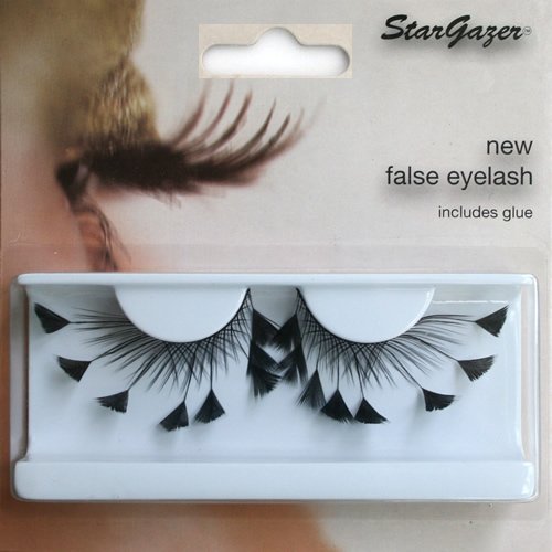 Stargazer's range of reusable feather false lashes are a fun way to enhance your makeup. A wide selection are available, from thick black to enhance your own lashes, to flamboyant designs with neon colours & bright feathers. The lashes are easy to apply & each pair comes complete with a small tube of eyelash glue.